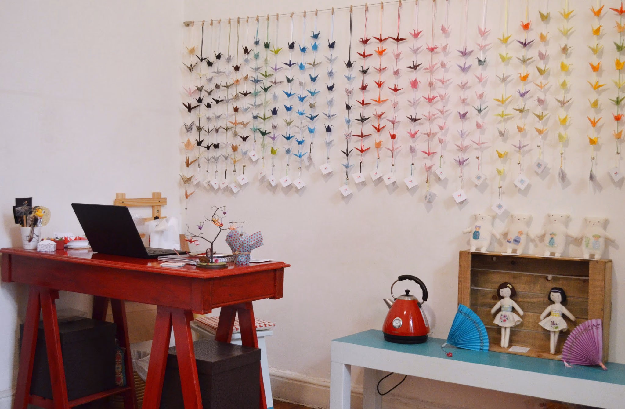 Como les contaba, el taller de Dani también es su Showroom, donde además de sus maravillosos plegados, Danisa ha seleccionado bellos objetos en perfecta armonía con su arte (busquen abajo todo el detalle de los emprendedores que la acompañan! Yo me fui con washi tapes de Casa Washi y muchas ganas de un Osito de Mis Ninots que son puro amor!)