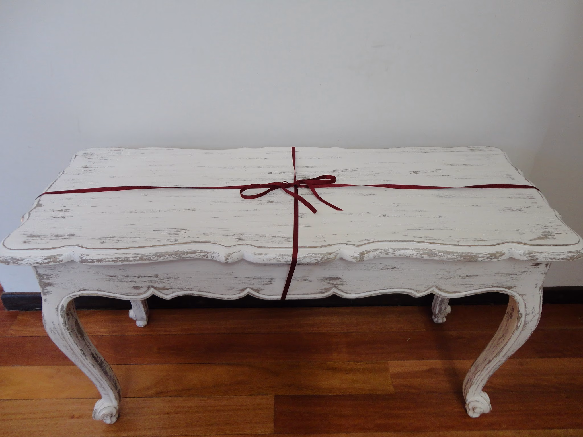 Pero después de una buena lijada y manos de pintura distribuidas en varios días (no se secaba nada con la humedad de la semana pasada!) llegamos justo a tiempo para hacer entrega de la ahora «mesita decapada».