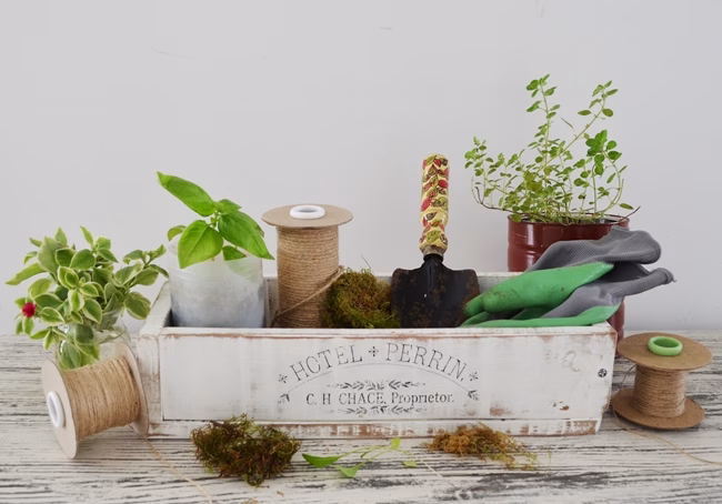 Y como ven… la inspiración botánico-culinaria no se agotó! porque a la hora de hacer las fotos, armé para uno un rincón de jardinería, con el cajoncito como aliado para ordenar la pala, guantes y algunos elementos del jardín y/o huerta.