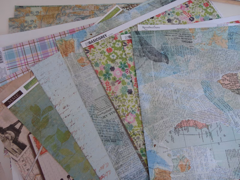 Los papeles que elegí, uno con mapas superpuestos & pajarito, y el otro con honguitos se ven mejor en estas fotos quizás