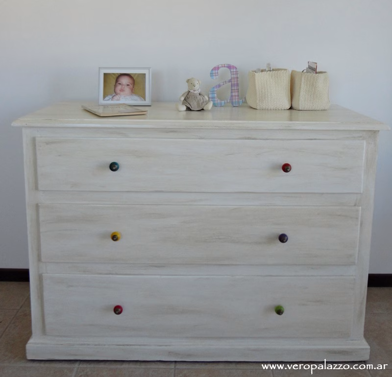 El nuevo mueble a reciclar/intervenir fue una cómoda para el cuarto de sus hijitos en camino, y que quedó así:
