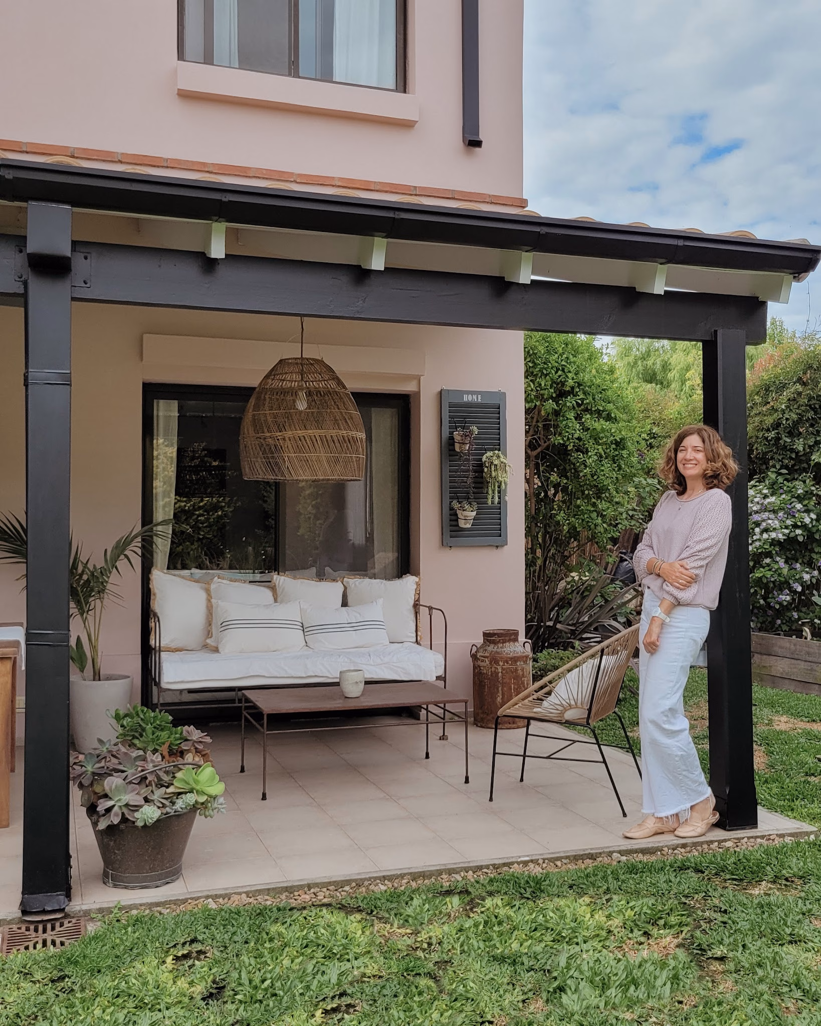 Como les conté en un post anterior, le tocó pintura exterior a la casa. El protagonista fue sin dudas el nuevo rosa pálido que quedó incréible, pero hubo otros «actores de reparto» que dieron su toque en la galería y detalles como zinguería, chimenea y hasta en las tejas.