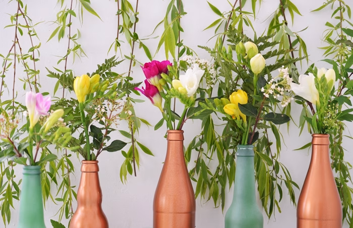 Saben que adoro reciclar y darle nuevo uso a cosas cotidianas como latas, cajones, etc… así que estas botellitas mini me parecieron divinas como para transformarse en lindos floreritos para una mesa o pic-nic primaveral!! Claramente este invierno se hizo eterno, y ya hay ganas de armar mesas y rincones primaverales o me pasa sólo a mí?!