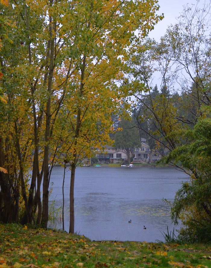 Cómo ven el día no ayudaba en nada, nos mojamos cada vez que bajamos del auto a sacar una foto, pero los colores del Otoño y ese bosque tan denso salpicado de casas divinas era tan tan lindo que realmente no nos importaba la lluvia. Estamos en Seattle, la lluvia es parte del paisaje.