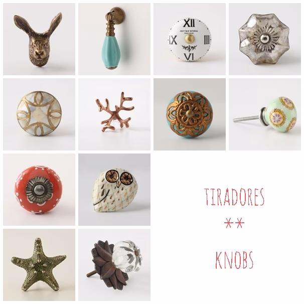 Si de pronto les entra una necesidad imperiosa de tiradores nuevos… he visto lindos en tiendas como Bartolomea, Ñata, Almacén de Curiosidades, etc. También Ayloviú suelen tener unos divinos de cerámica, muy onda Anthropologie.