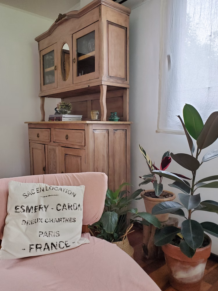 Hace unos meses, mientras terminaba el makeover de una clienta, me animé cambiar sutilmente el look de este vajillero vintage que tenemos en el living-comedor.